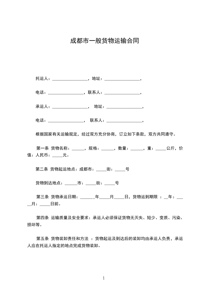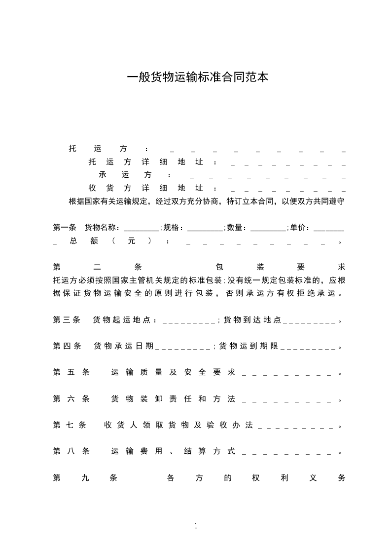 第一条 货物名称:_________;规格:_________;数量:_________;单价:_________总额(元):_________。