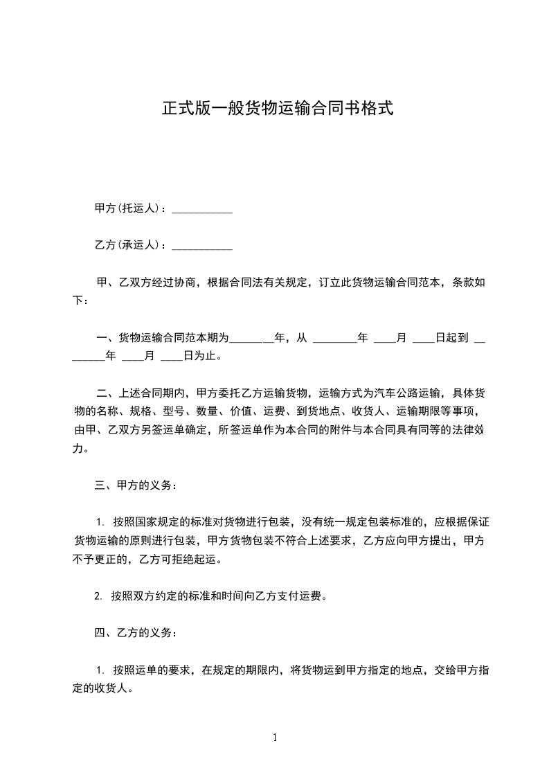 2.承运方的义务:在合同规定的期限内,将货物运到指定的地点,按时向收货人发出货物到达的通知。对托运的货物要负责安全,保证货物无短缺、无损坏、无人为的变质,如有上述问题,应承担赔偿义务。在货物到达以后,按规定的期限,负责保管。