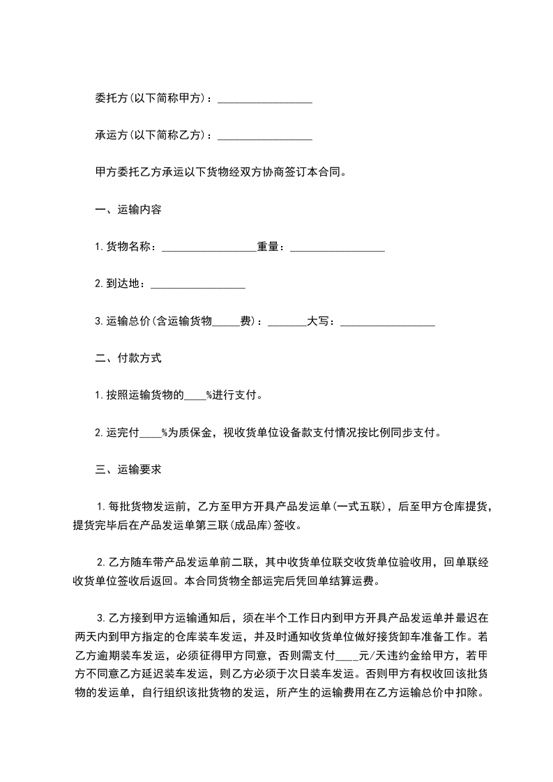 5.罐车发运货物,因未随车附带规格质量证明或化验报告,造成收货方无法卸货时,托运方应偿付承运方卸车等存费及违约金。