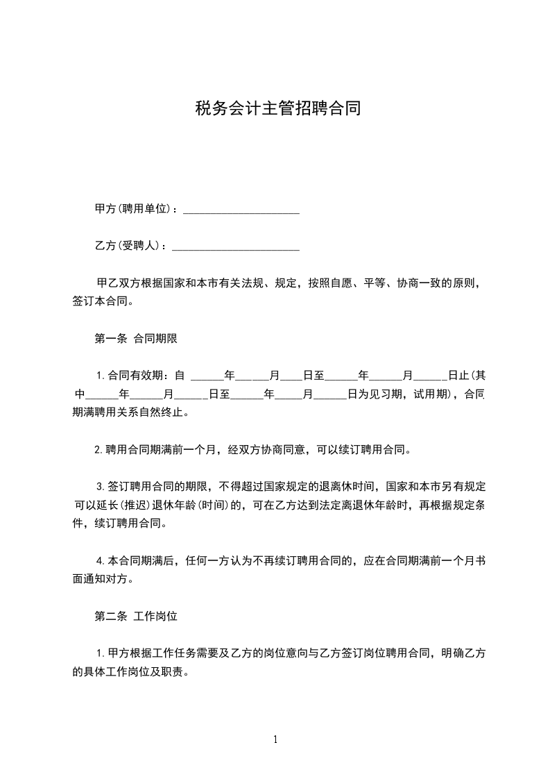 1.甲方根据工作任务需要及乙方的岗位意向与乙方签订岗位聘用合同,明确乙方的具体工作岗位及职责。