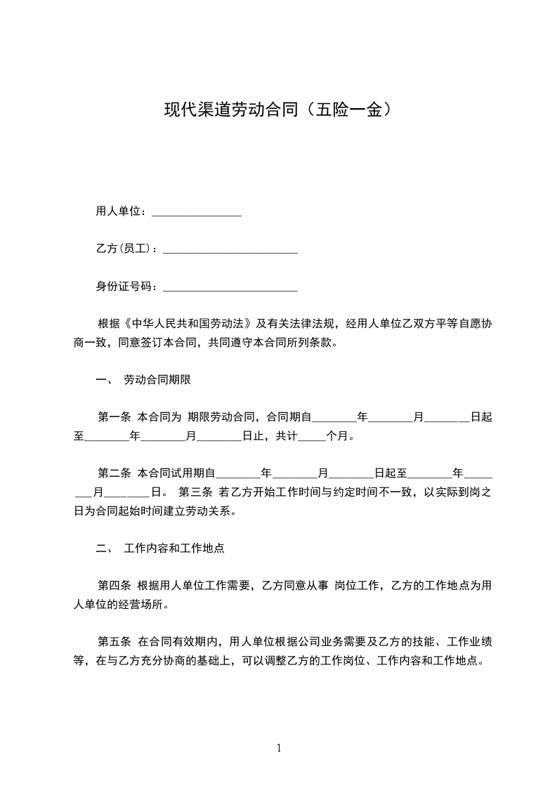 第一条 合同期限采取下列第______种形式: