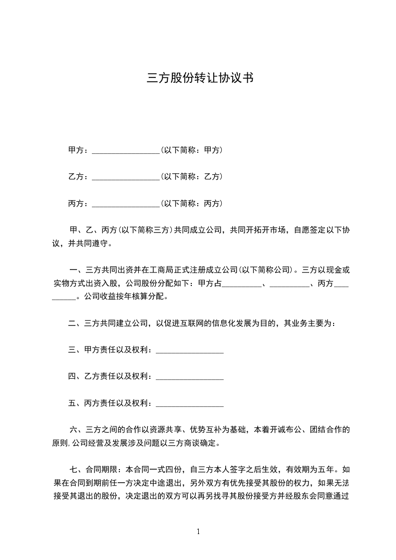 10.2本协议书一式三份,甲、乙、丙三方各执一份,具有相同的法律效力。