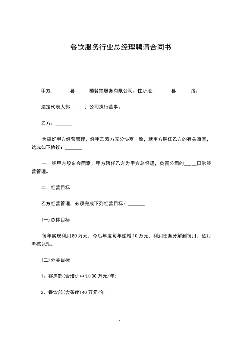 餐饮服务有限公司总经理聘任合同
