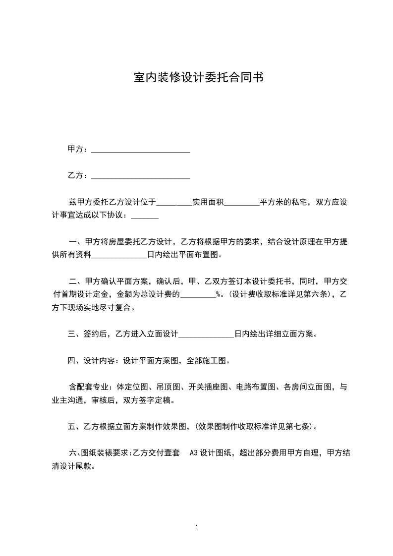 二、甲方确认平面方案,确认后,甲、乙双方签订本设计委托书,同时,甲方交付首期设计定金,金额为总设计费的_________%。(设计费收取标准详见第六条),乙方下现场实地尽寸复合。