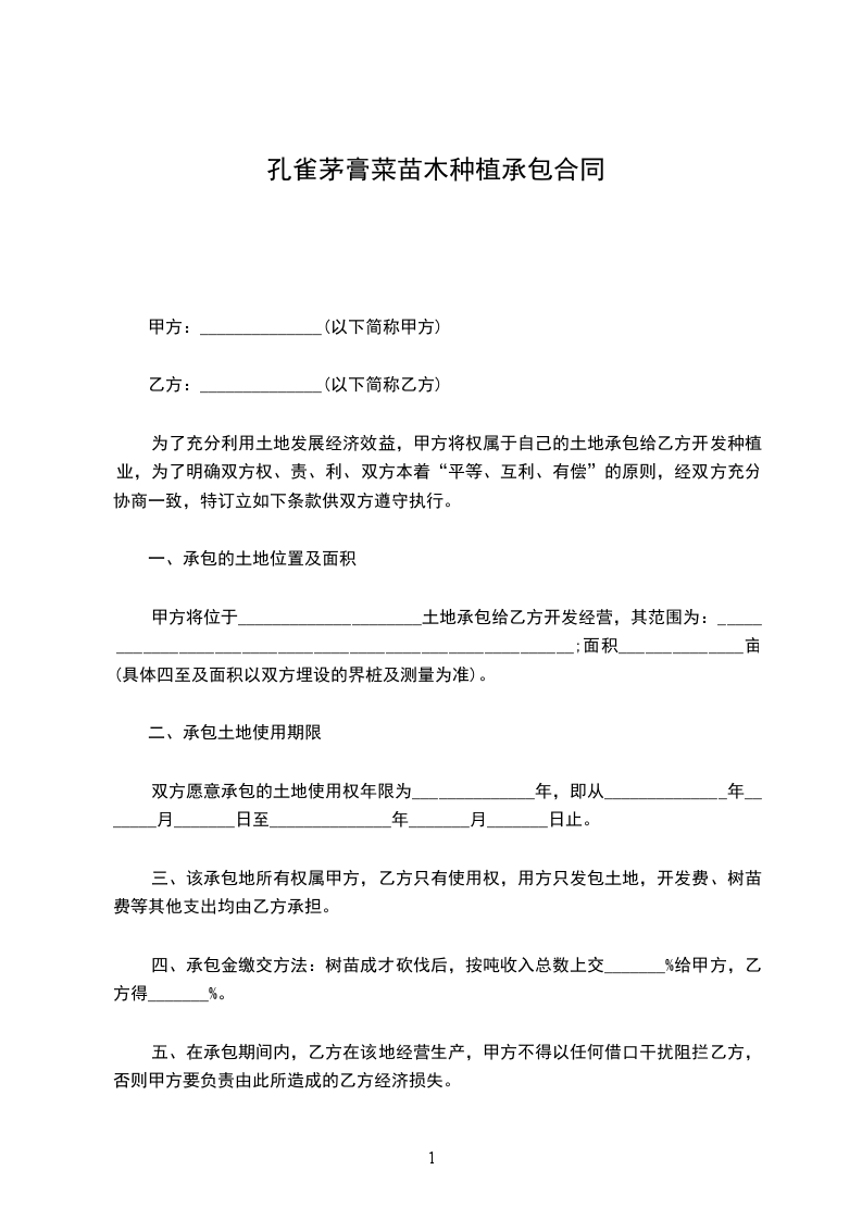 孔雀茅膏菜种苗采购合同
