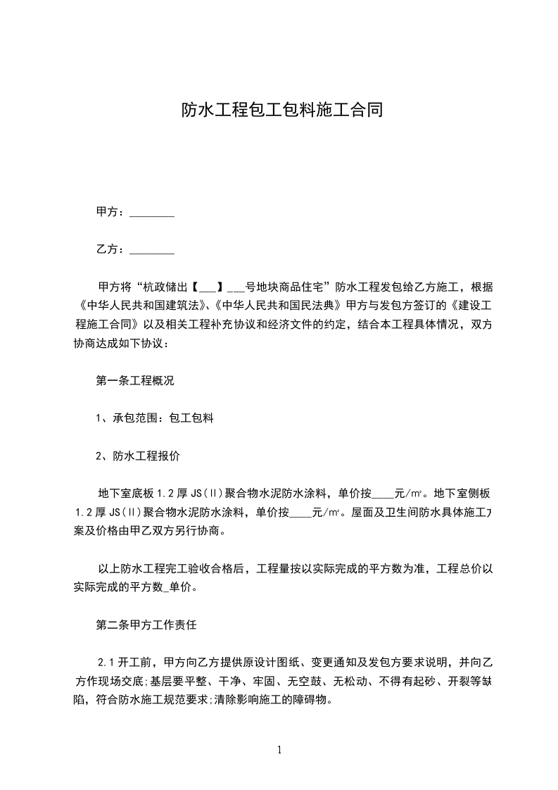 二、承包方式:包工包料