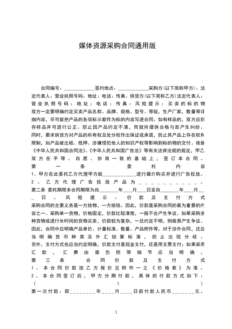 1、甲方在此委托乙方代理甲方就_____________进行媒介购买并进行广告投放。