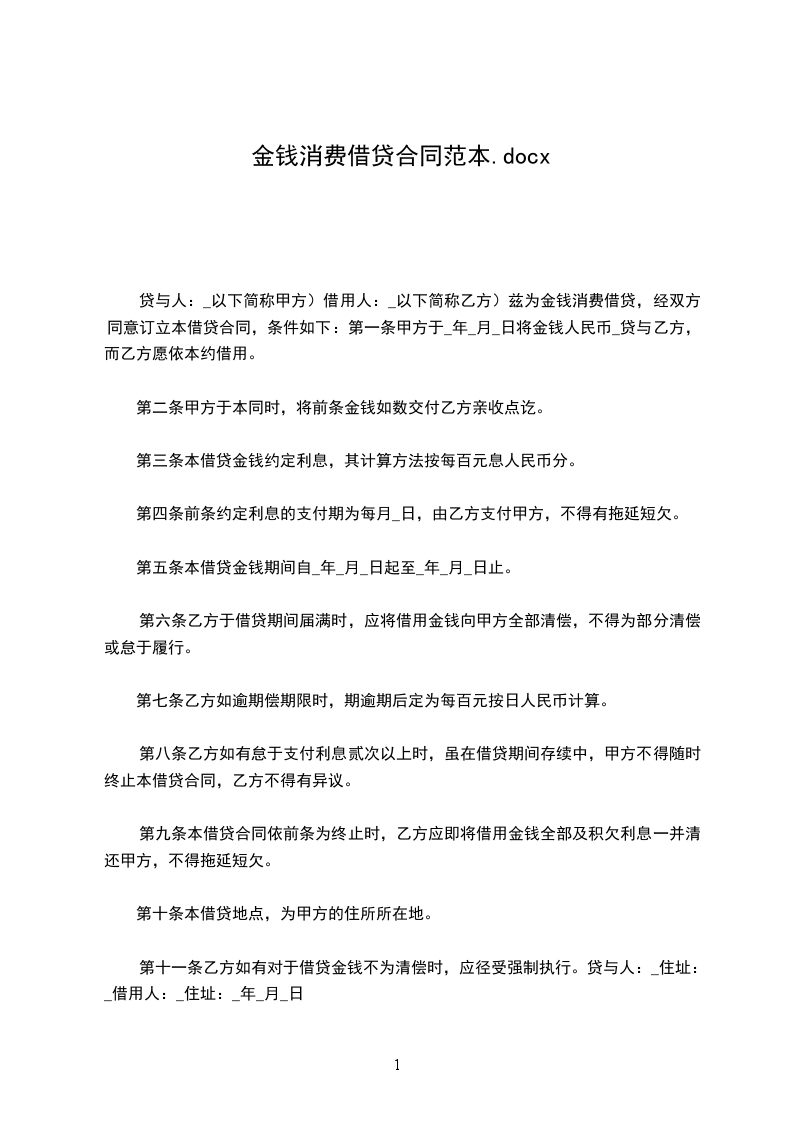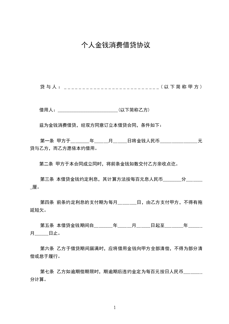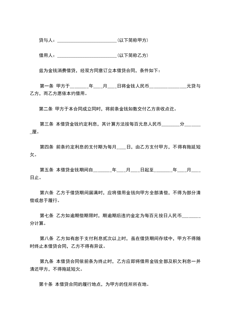 兹为金钱消费借贷,经双方同意订立本借贷合同,条件如下: