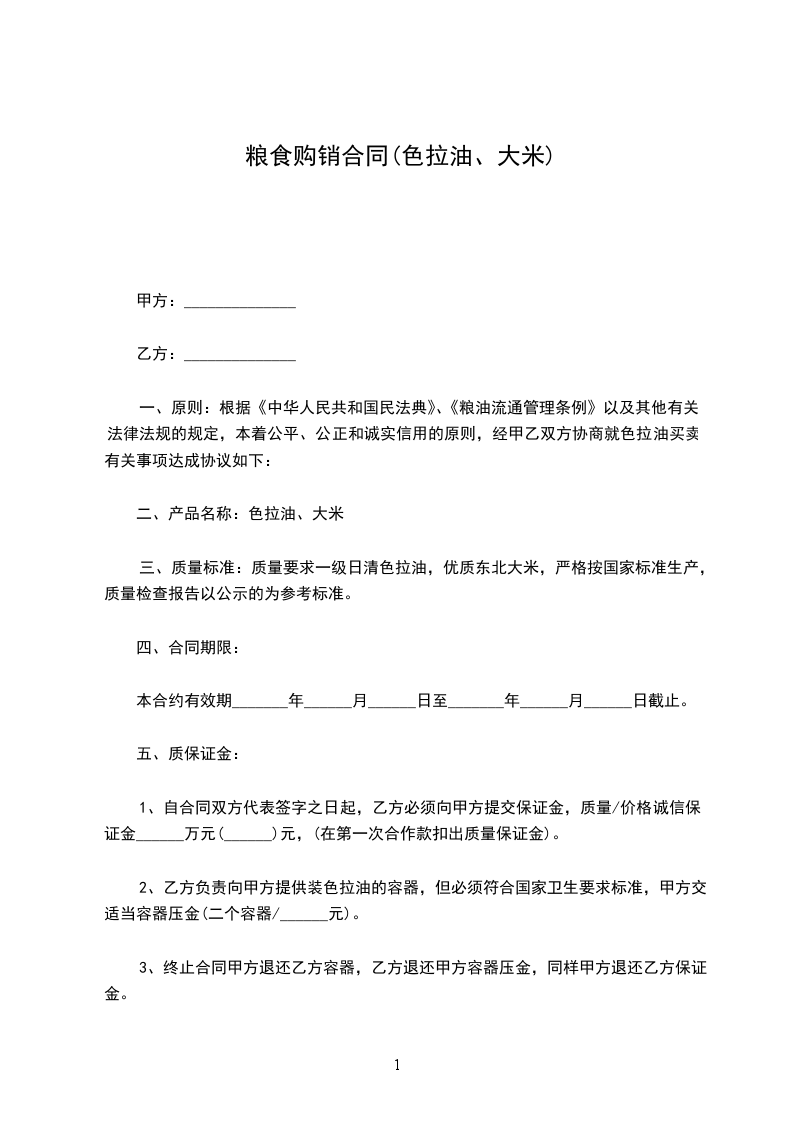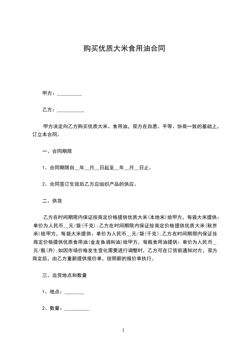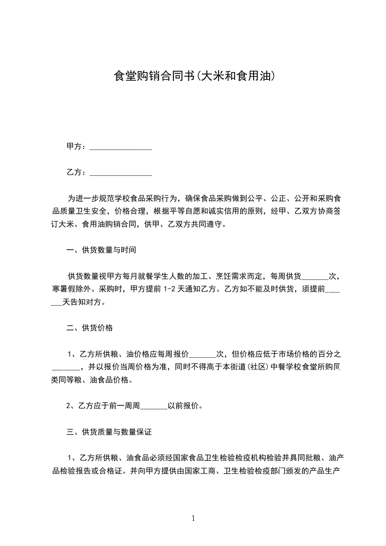 为进一步规范学校食品采购行为,确保食品采购做到公平、公正、公开和采购食品质量卫生安全,价格合理,根据平等自愿和诚实信用的原则,经甲、乙双方协商签订大米、食用油购销合同,供甲、乙双方共同遵守。