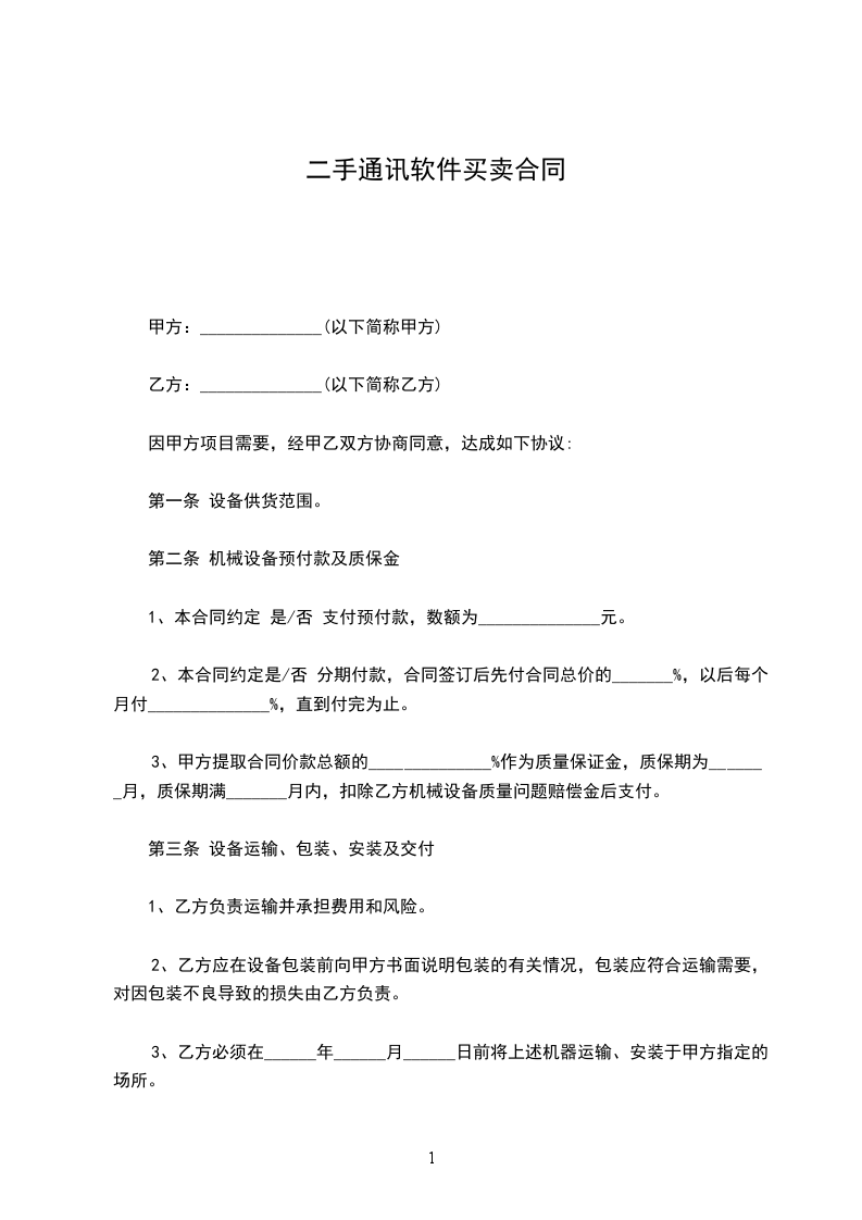 1、乙方保证提供给甲方的设备为全新、无损坏的设备,符合本合同、要求适合合同目的的设备。