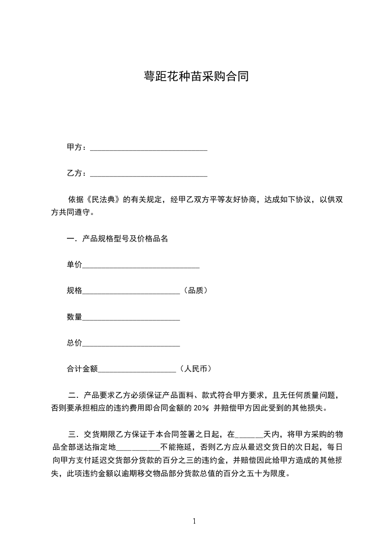 萼距花种苗采购合同