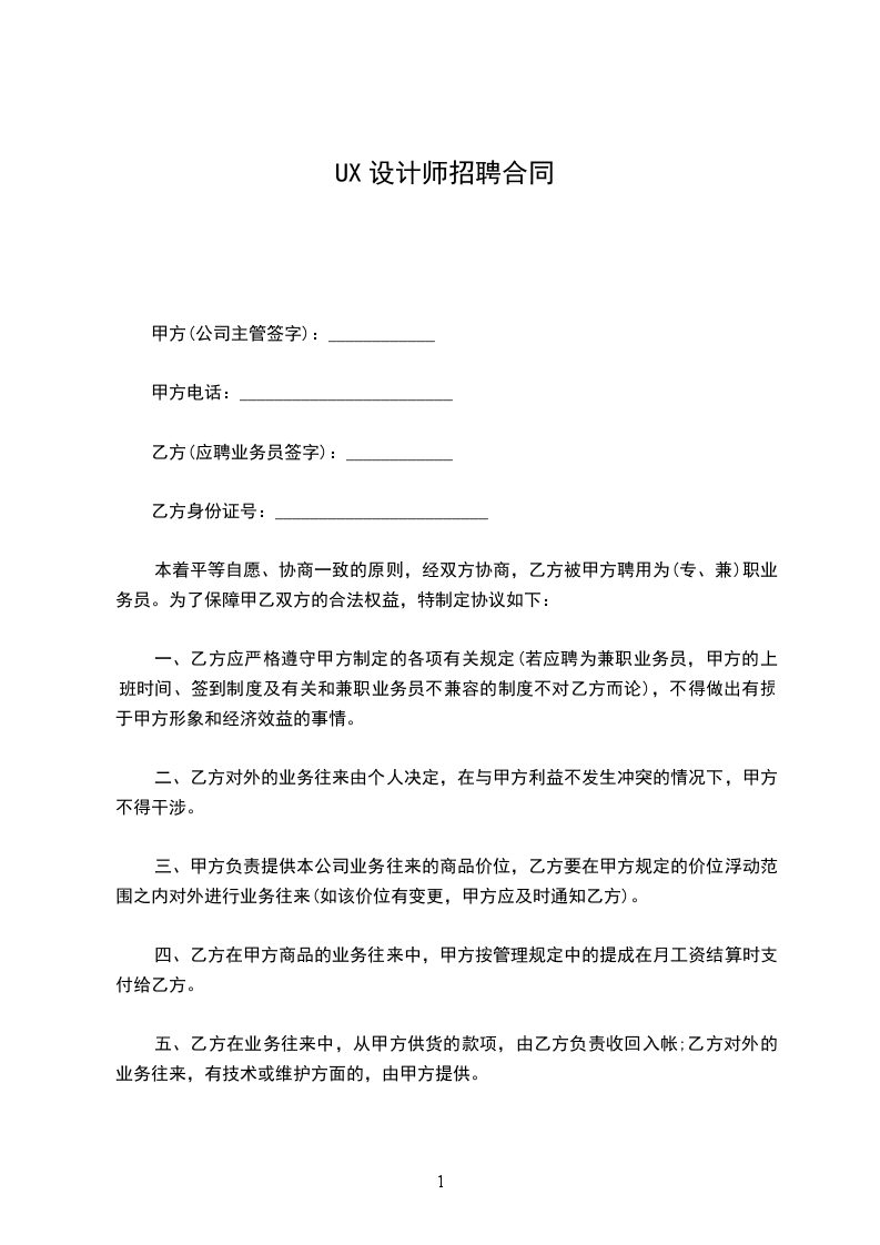 七、乙方每周向甲方汇报自己的业务开展情况,以作为甲方下一步市场业务开展的参考。 以上协议经双方签字后生效。