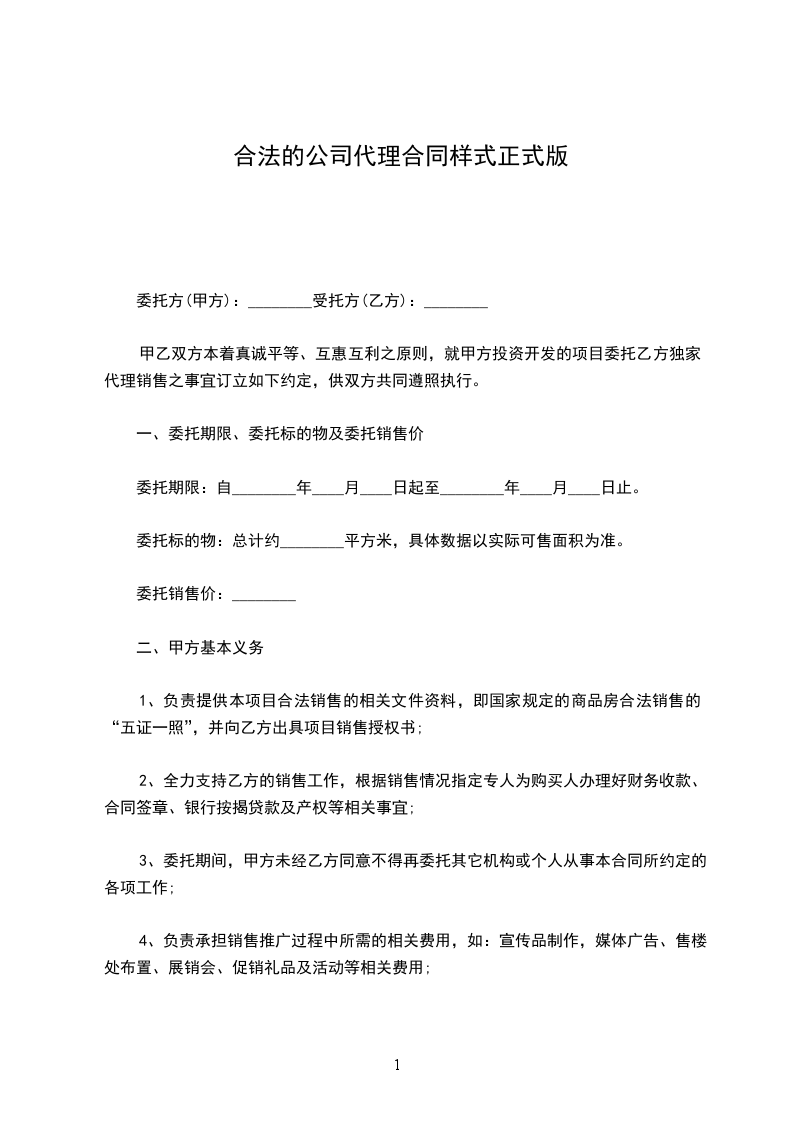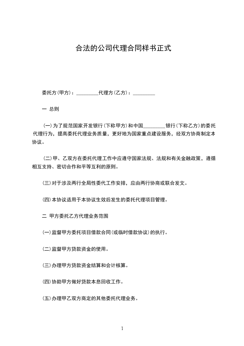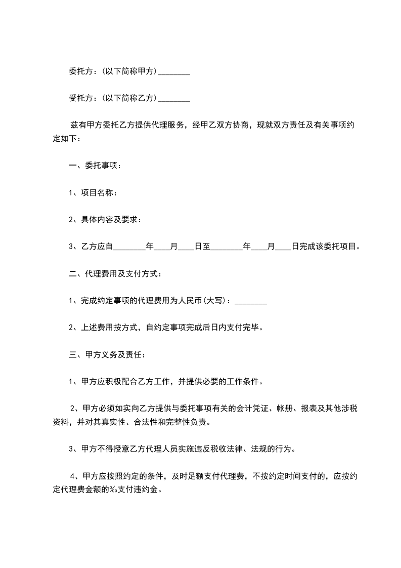 二、代理期限为:________年____月____日至________年____月____日。