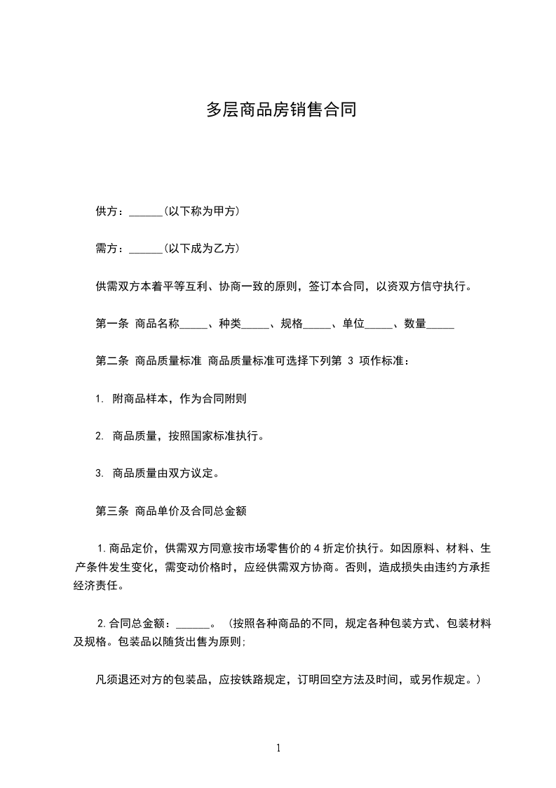第一条 商品名称_____、种类_____、规格_____、单位_____、数量_____