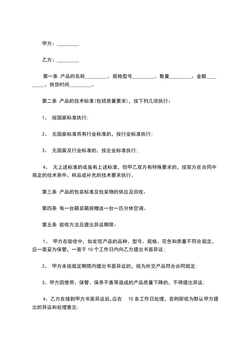 第一条 其产品名称______、规格______、质量(技术指标)______、单价______、总价______。