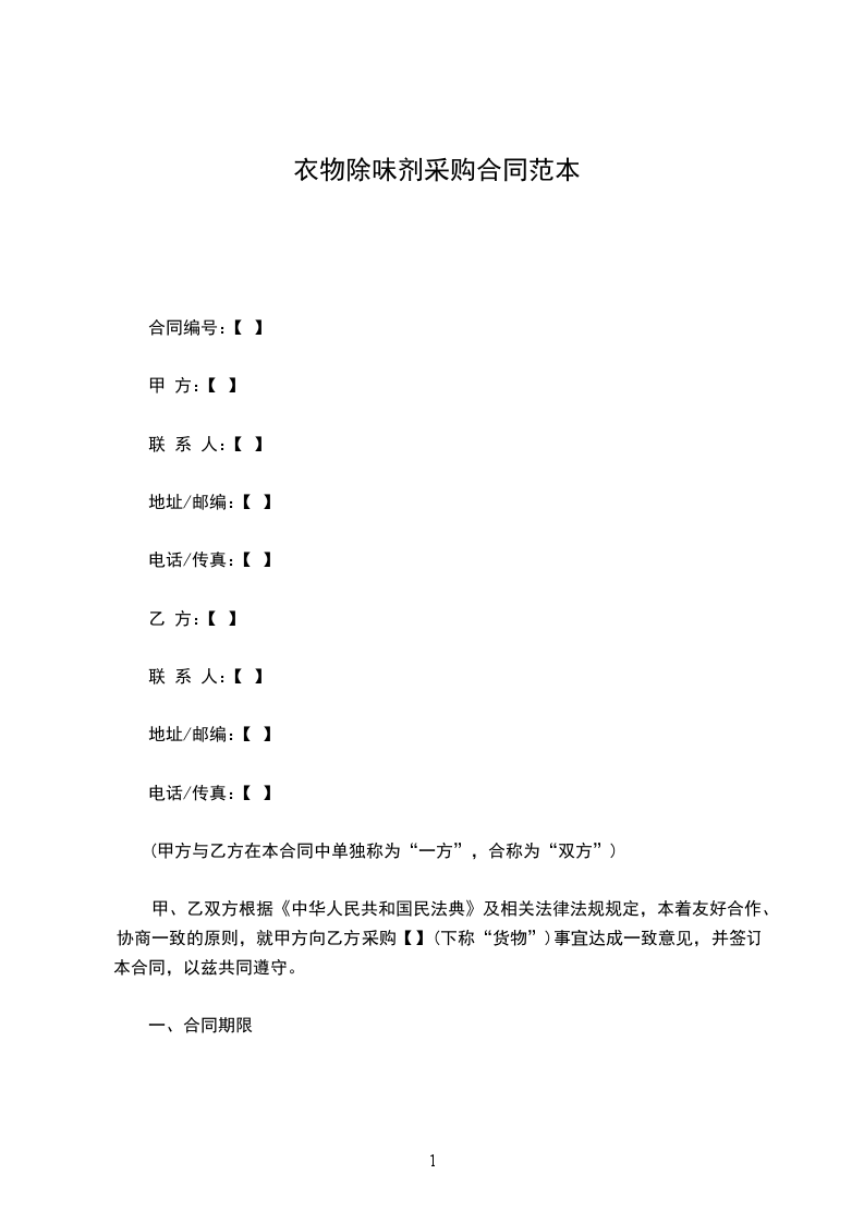 本合同有效期自【】年【】月【】日起至【】年【】月【】日止。甲方将于合同期内以订单(订单格式见附件一)形式向乙方采购货物。