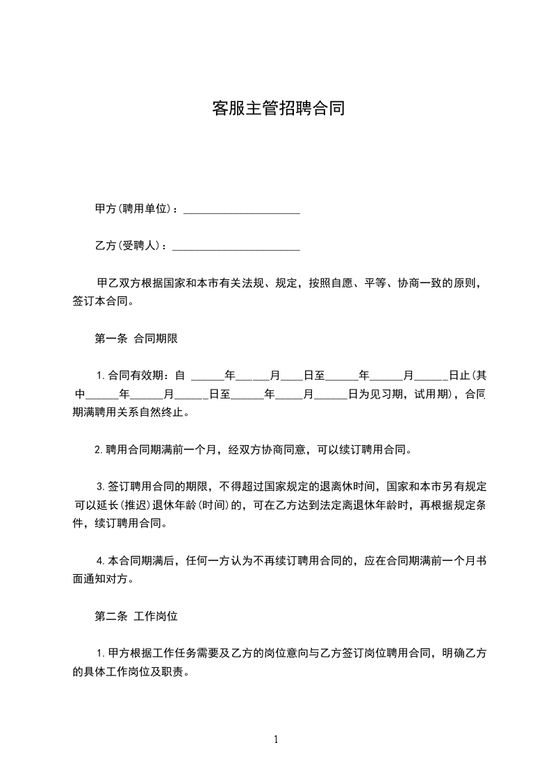 第一条 合同期限