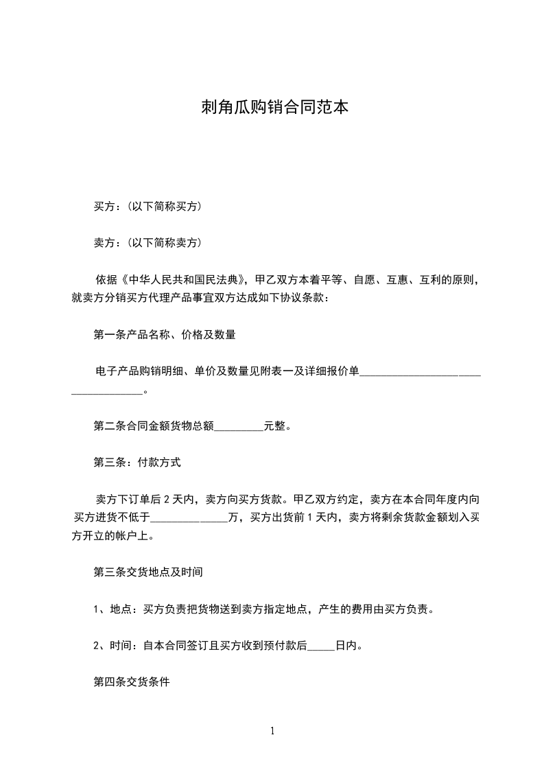 第二条合同金额货物总额_________元整。