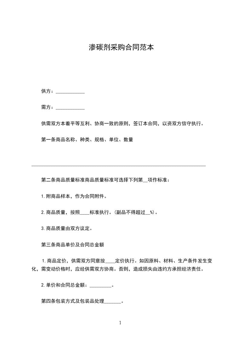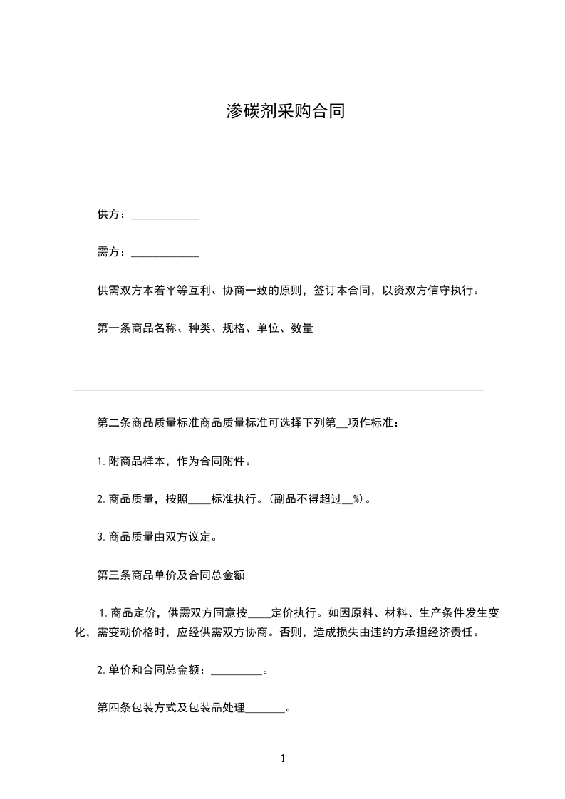 渗碳剂采购合同
