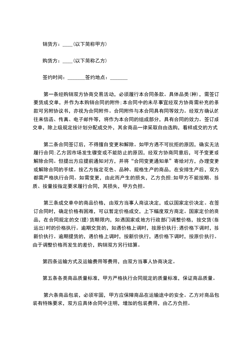 2.商品质量,按照____标准执行。(副品不得超过__%)。