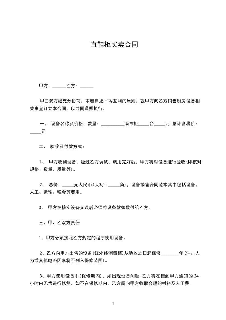 一、 设备名称及价格、数量:__________消毒柜_____台_____元 总计含税价:_____元