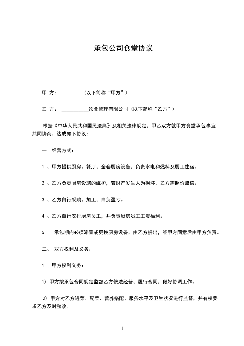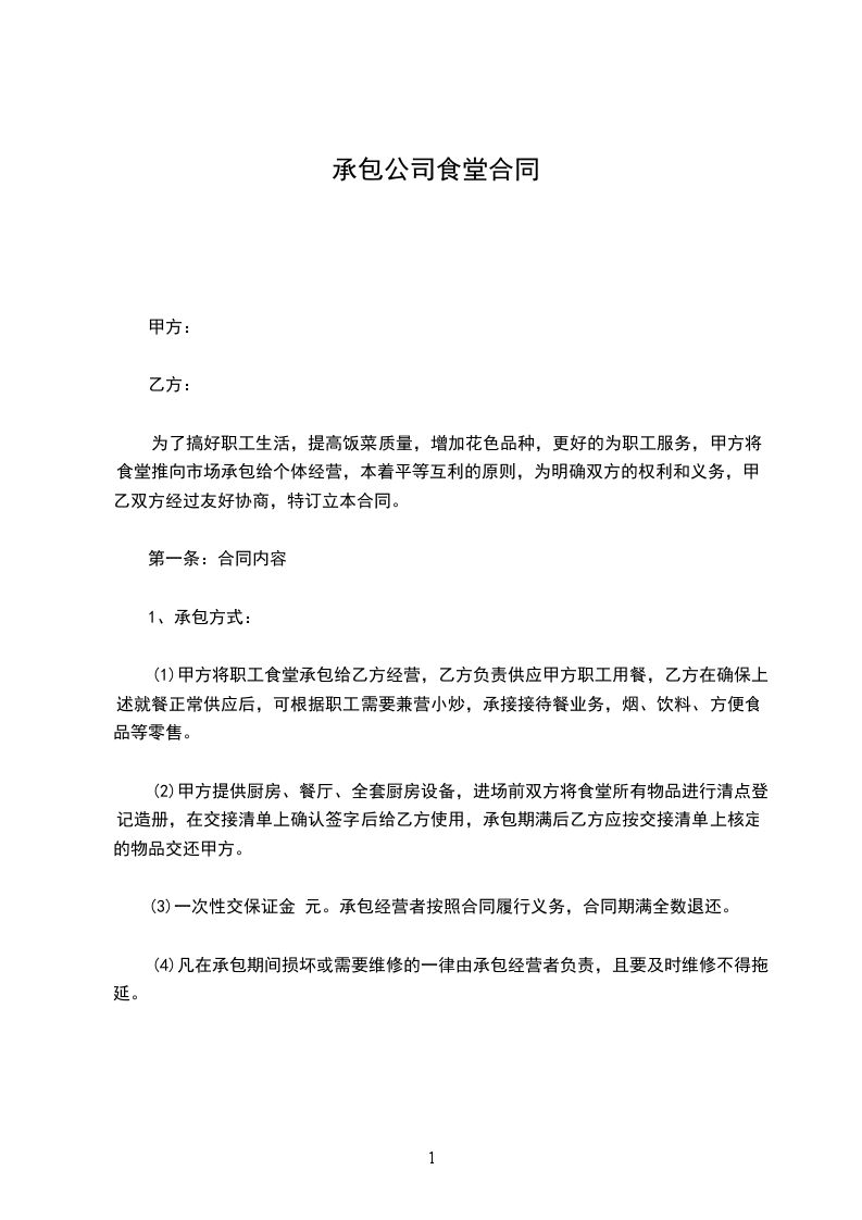 为了稳定职工队伍,确保职工身心健康;使公司职工食堂更好地为一线员工服务,使其更加规范和便于管理,经双方平等协商,甲方同意职工食堂由乙方承包经营;为明确双方权利义务,特订立本合同。
