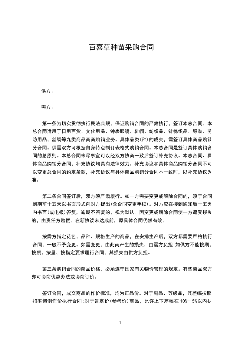 百喜草种苗采购合同