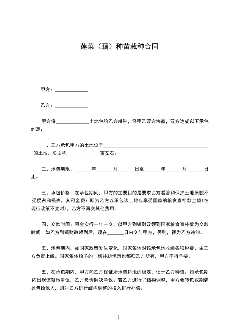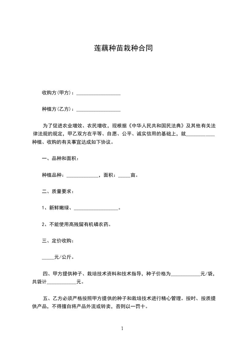 莲藕种苗采购合同