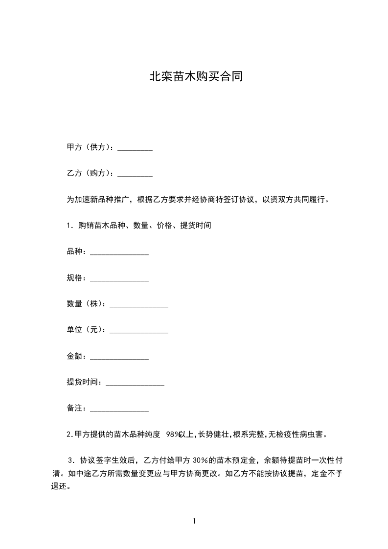 北栾种苗采购合同