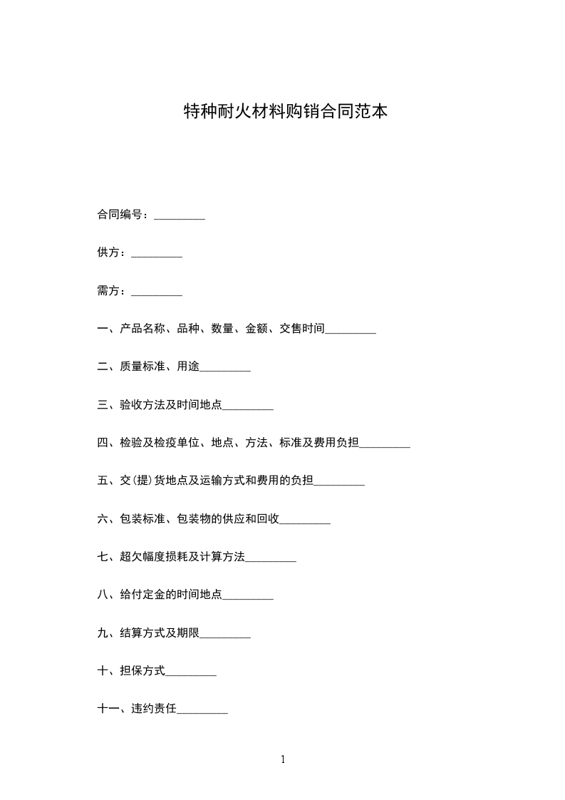特种耐火材料购销合同范本