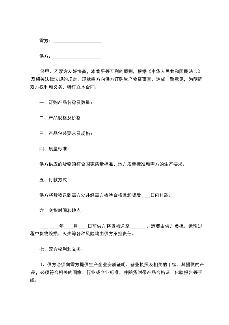 第六条商品包装必须牢固,供方应保障商品在运输途中的安全。需方对商品包装有特殊要求,双方应在具体合同中注明,增加的包装费用由需方负担。