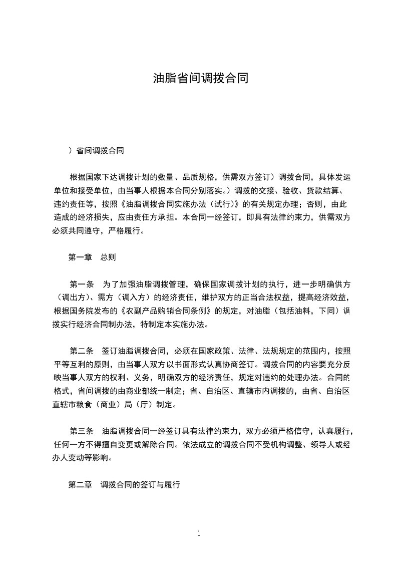 第二条 签订油脂调拨合同,必须在国家政策、法律、法规规定的范围内,按照平等互利的原则,由当事人双方以书面形式认真协商签订。调拨合同的内容要充分反映当事人双方的权利、义务,明确双方的经济责任,规定对违约的处理办法。合同的格式,省间调拨的由商业部统一制定;省、自治区、直辖市内调拨的,由省、自治区、直辖市粮食(商业)局(厅)制定。