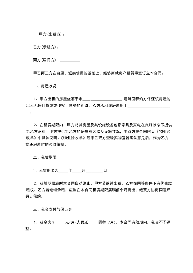 甲乙丙三方在自愿、诚实信用的基础上,经协商就房产租赁事宜订立本合同: