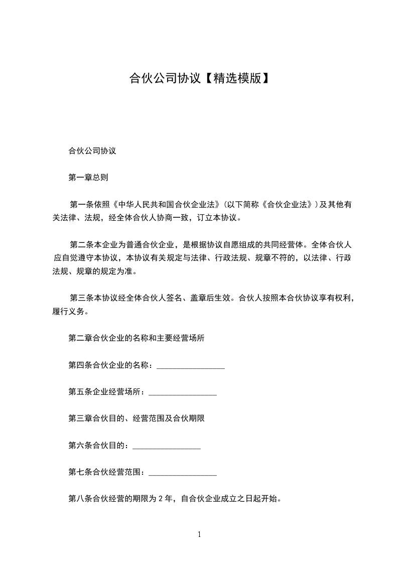 合伙期限为________年,自________年____月_________日起,至________年____月_________日止。如公司正常经营,__无意退了,则合同期限自动延续。