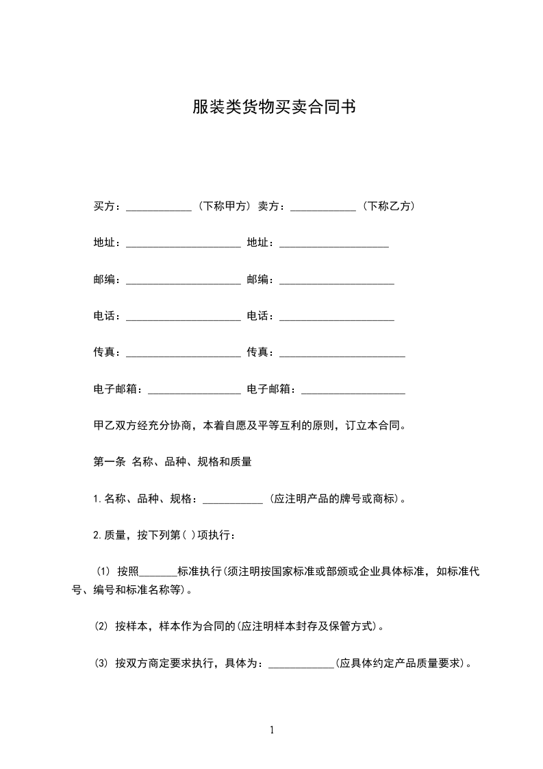 买方:____________ (下称甲方) 卖方:____________ (下称乙方)