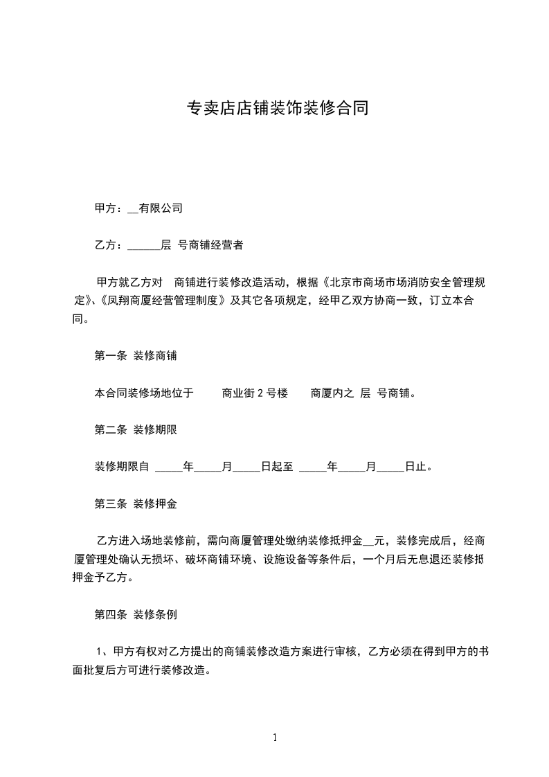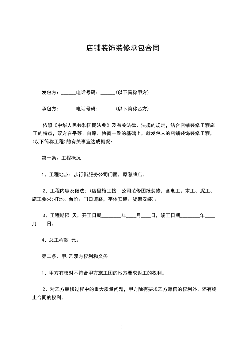 1、店面装修总承包价格为人民币_____元(大写:人民币_____元);