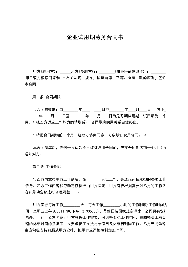 第一条 合同期限