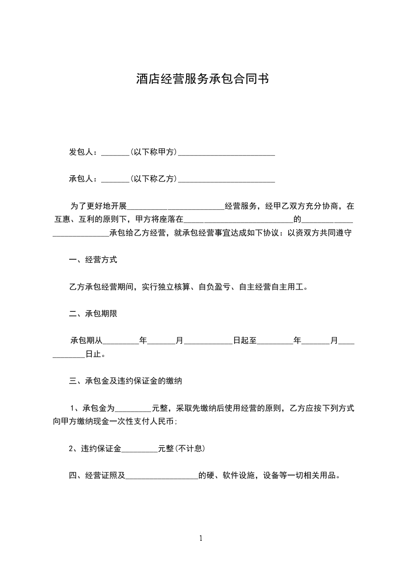 为了更好地开展________________________经营服务,经甲乙双方充分协商,在互惠、互利的原则下,甲方将座落在___________________________的___________________________承包给乙方经营,就承包经营事宜达成如下协议:以资双方共同遵守。