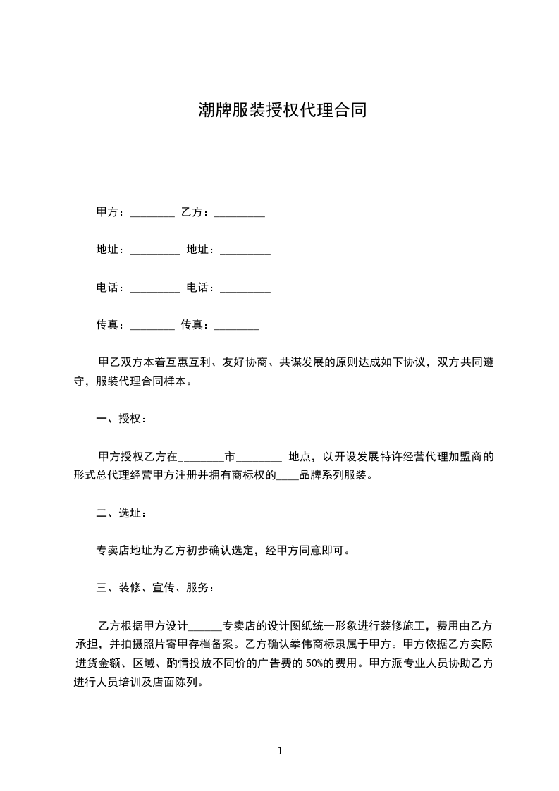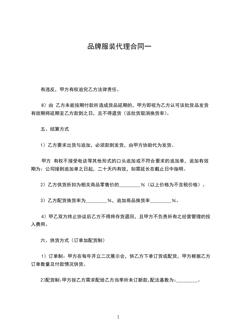 3)有效证明:乙方必须提供甲方有效的营业执照,明复印件。乙方经营地必须悬挂标示______品牌于明显位置。乙方店铺内不得销售其他品牌服饰。