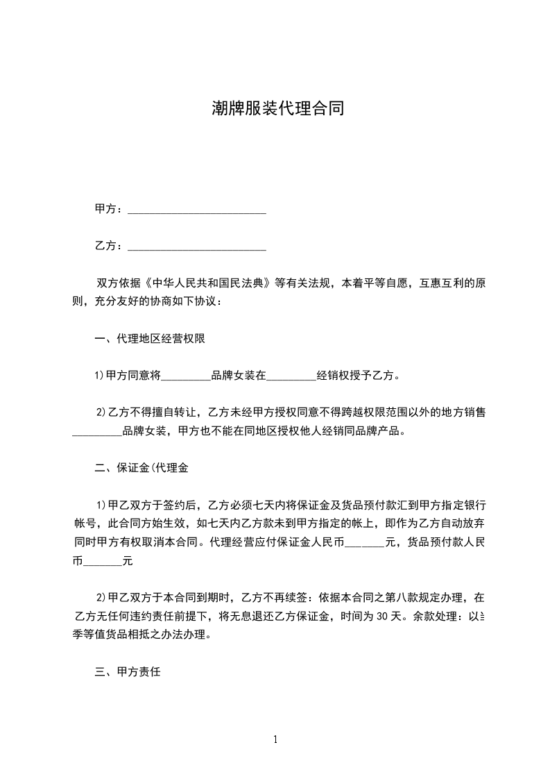 1)甲方同意将_________品牌女装在_________经销权授予乙方。