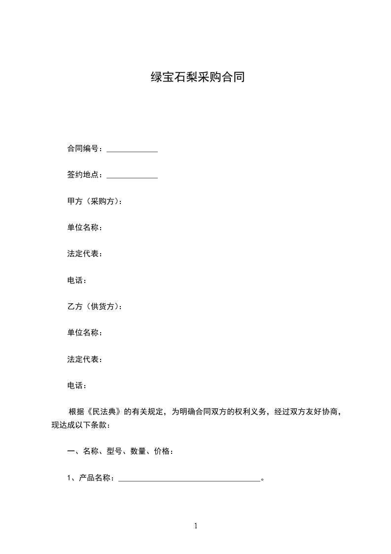 绿宝石梨采购合同