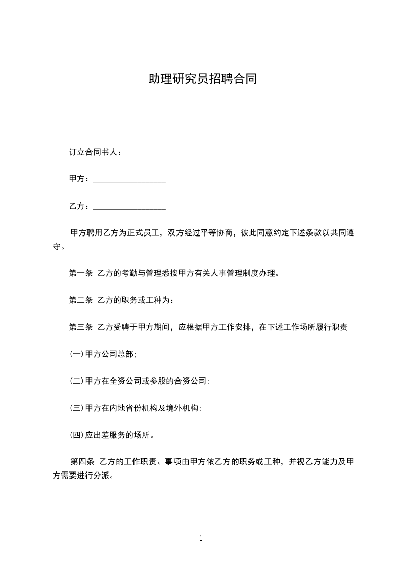 算法研究员招聘合同