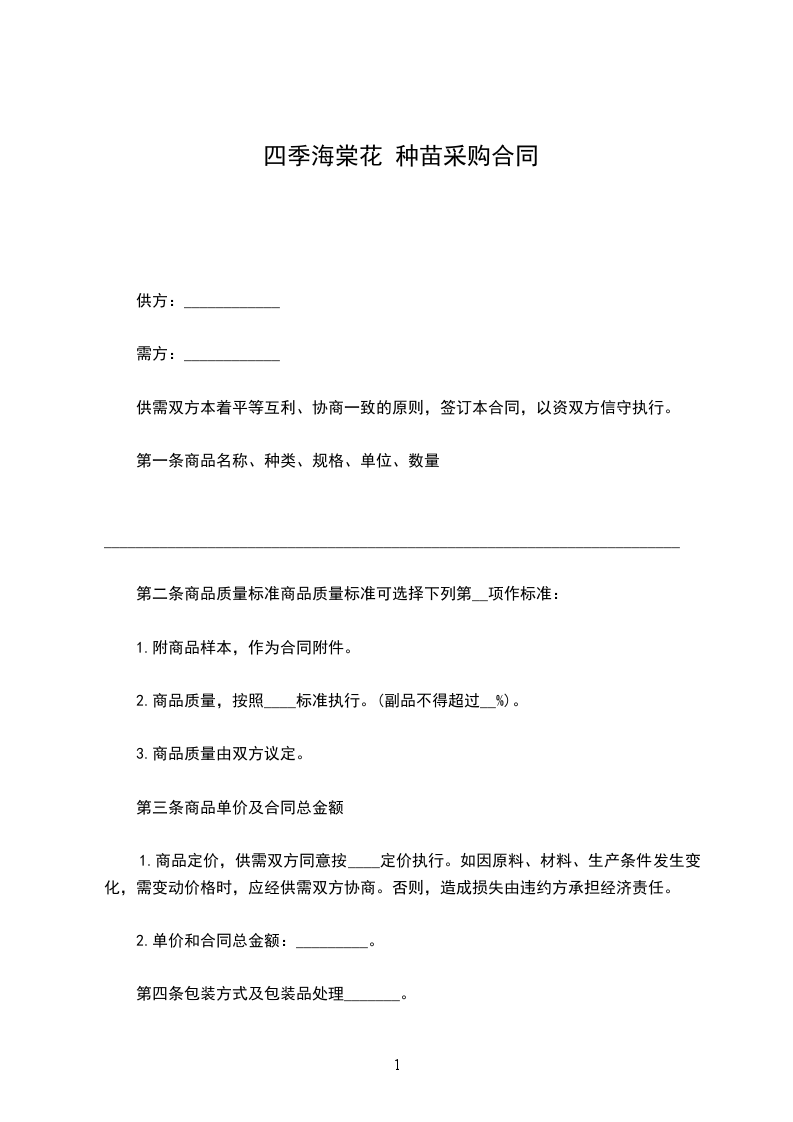 四季海棠花 种苗采购合同
