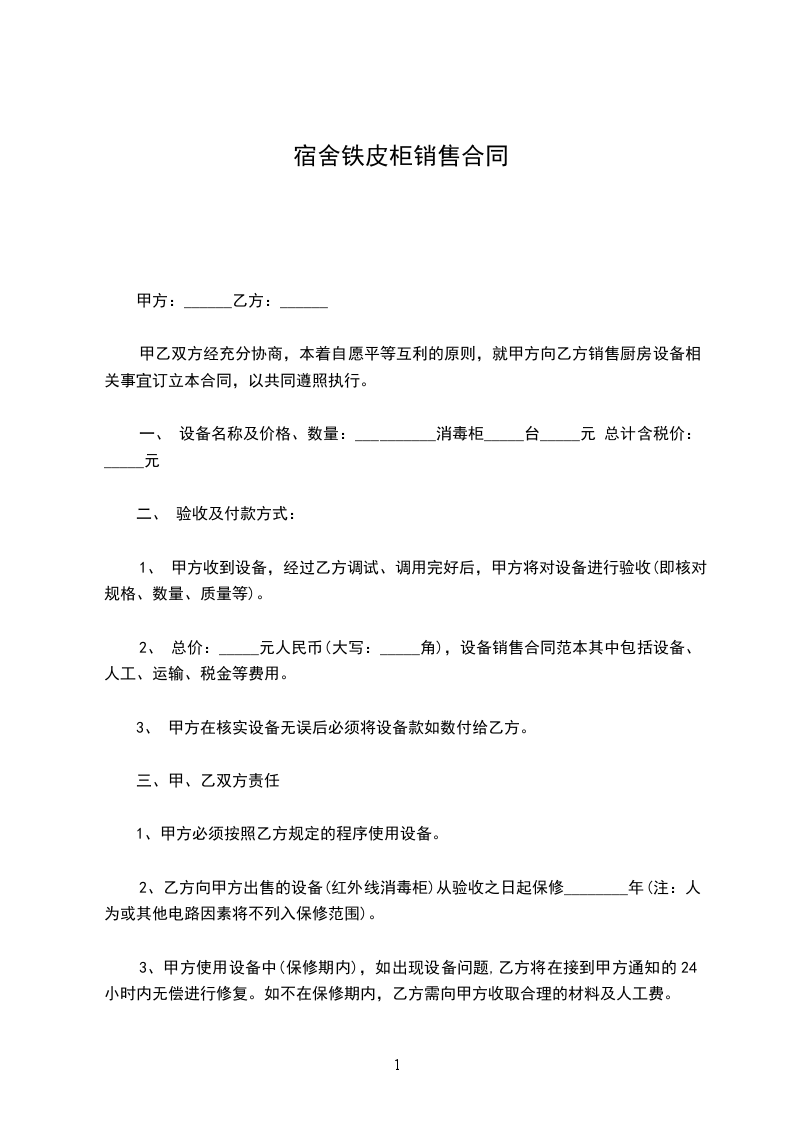 一、 设备名称及价格、数量:__________消毒柜_____台_____元 总计含税价:_____元
