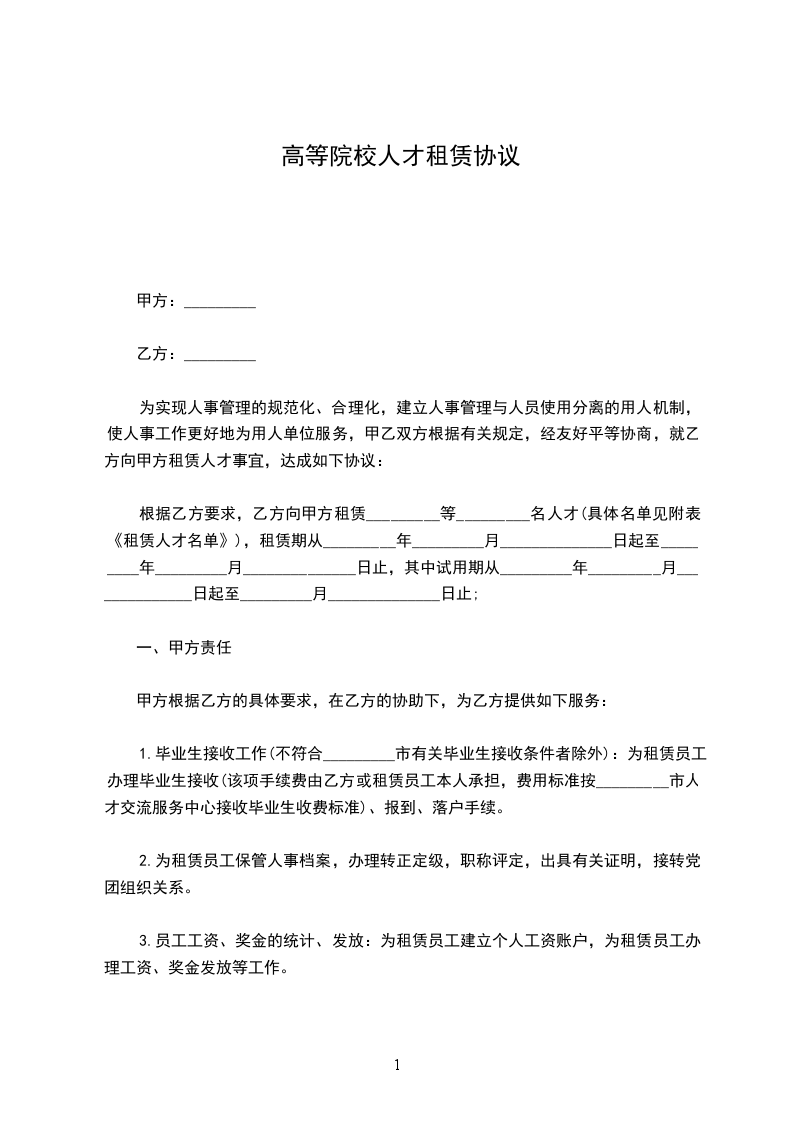 为实现人事管理的规范化、合理化,建立人事管理与人员使用分离的用人机制,使人事工作更好地为用人单位服务,甲乙双方根据有关规定,经友好平等协商,就乙方向甲方租赁人才事宜,达成如下协议:
