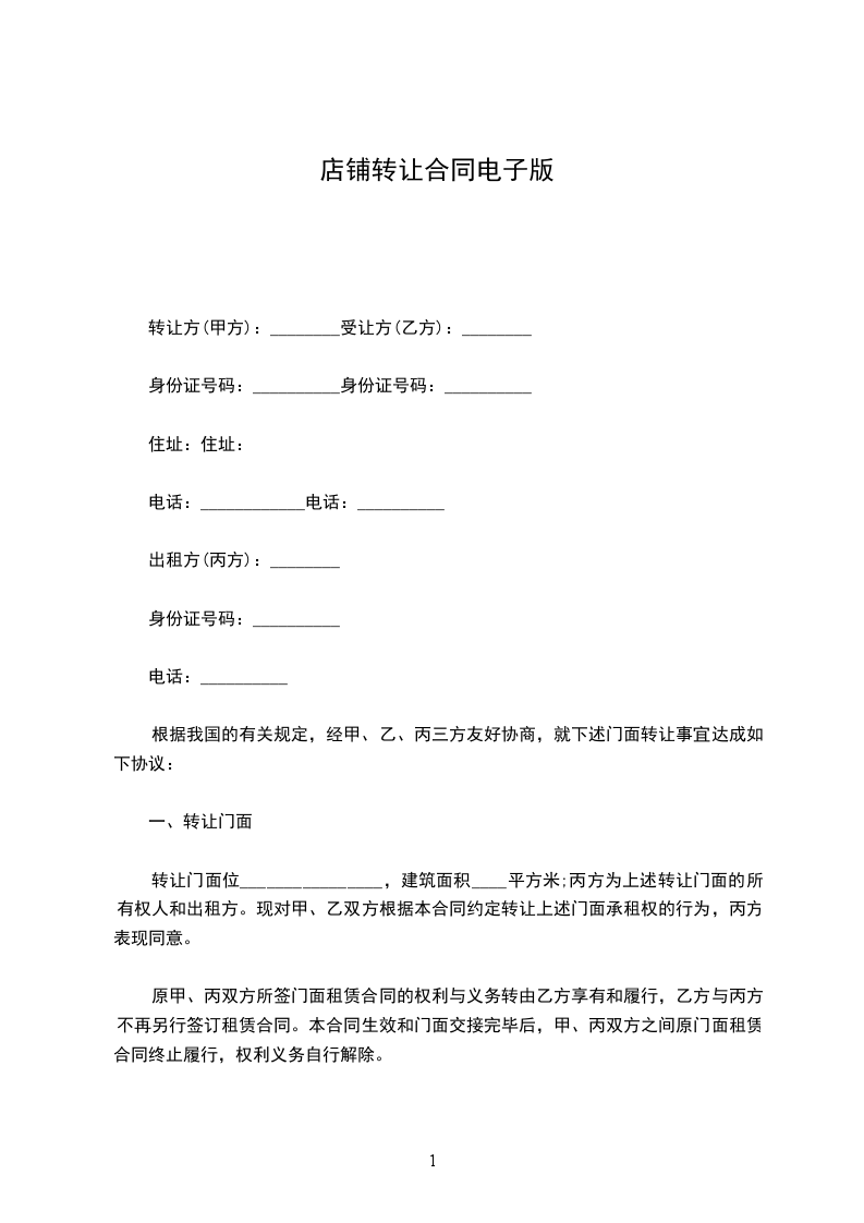 电商店铺转让协议