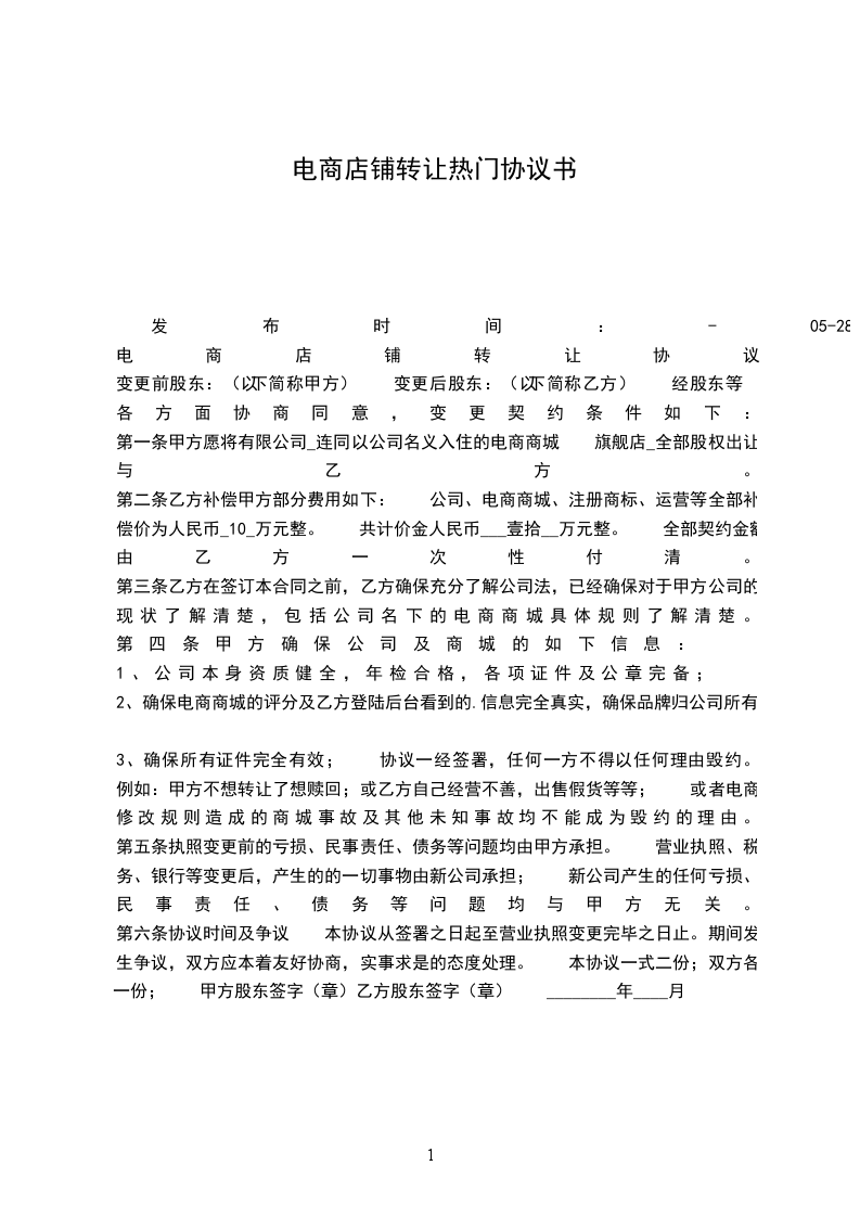 3、确保所有证件完全有效; 协议一经签署,任何一方不得以任何理由毁约。 例如:甲方不想转让了想赎回;或乙方自己经营不善,出售假货等等; 或者电商修改规则造成的商城事故及其他未知事故均不能成为毁约的理由。