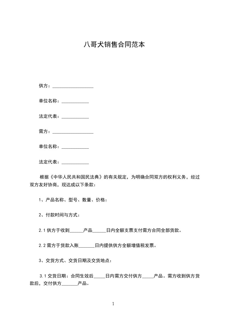 八哥犬采购合同范本
