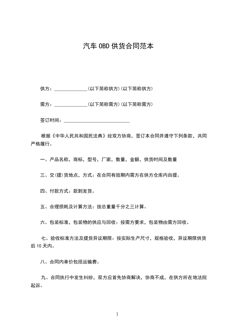 汽车OBD购销合同范本