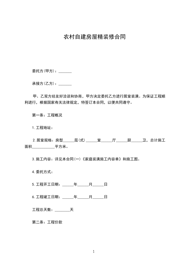 工程价款(金额大写)___________________元,详见本合同(二)《家庭装潢工程材料预算表》。